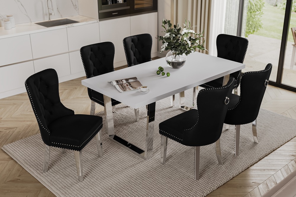 Stand out from the crowd with our dining table’s sturdy chrome finish metal legs, adding a modern touch to the classic white tabletop. These sleek legs provide reliable support while enhancing the overall aesthetic of your dining area.